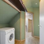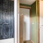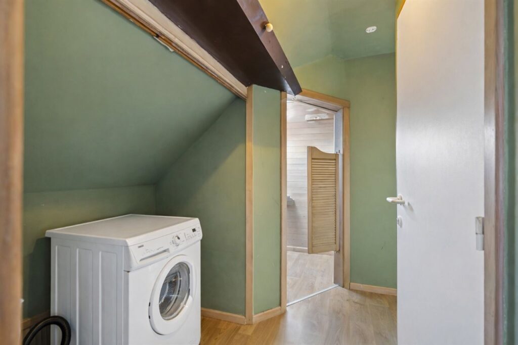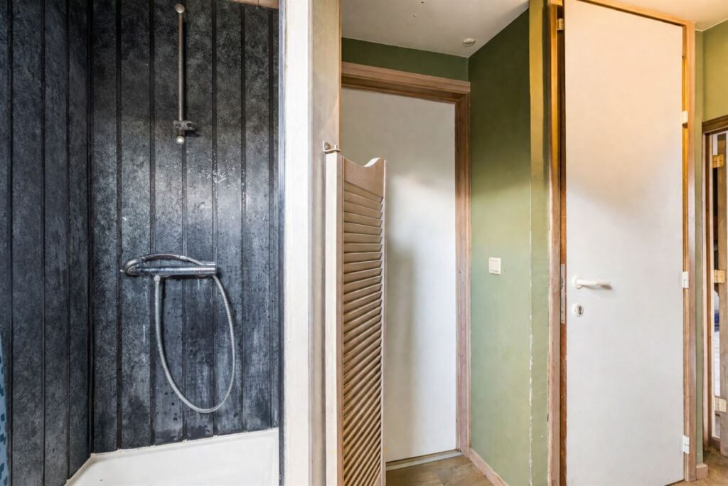 Centraal bevindt zich de badkamer, uitgerust met douche, toilet en aansluitingen voor wasmachine en droogkast.