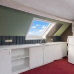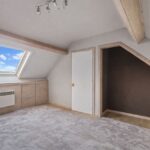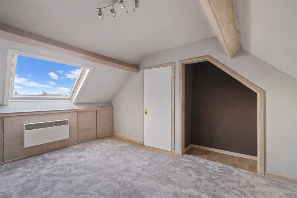 Verder beschikt het appartement over een ruime slaapkamer, eveneens voorzien van een Veluxraam, wat zorgt voor een aangename lichtinval.