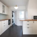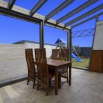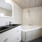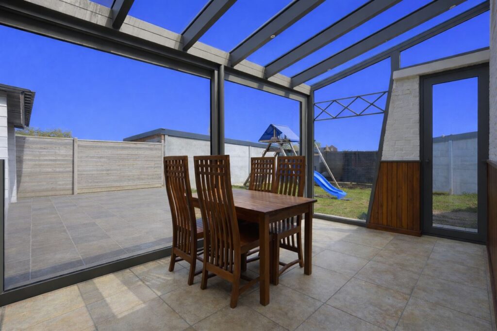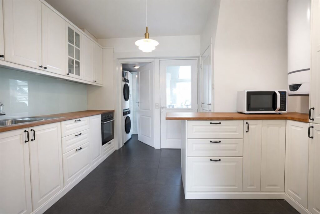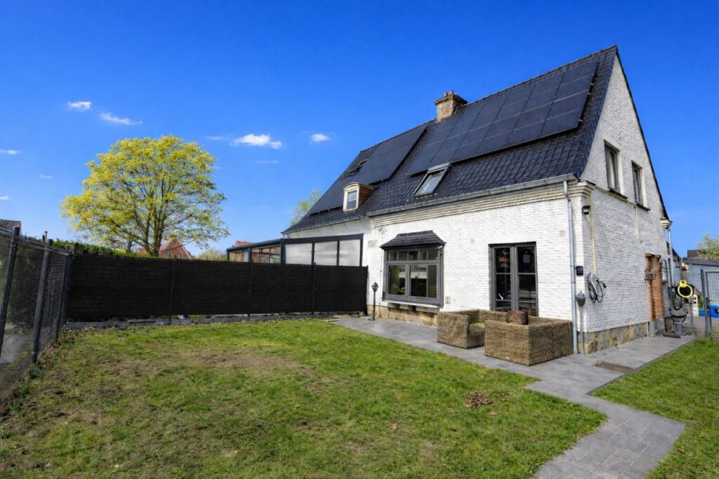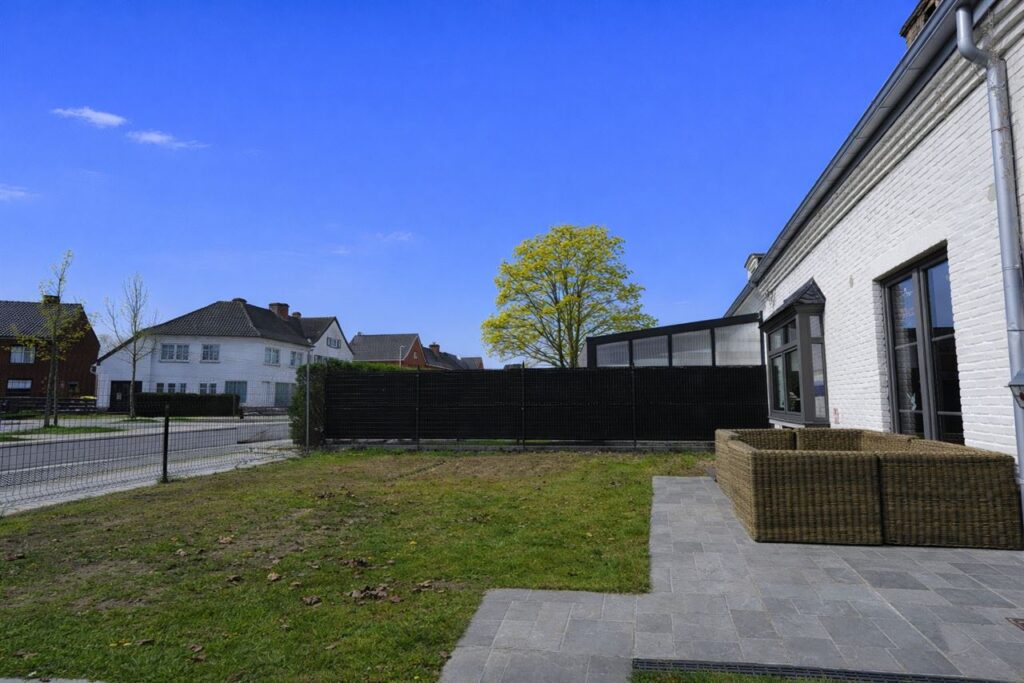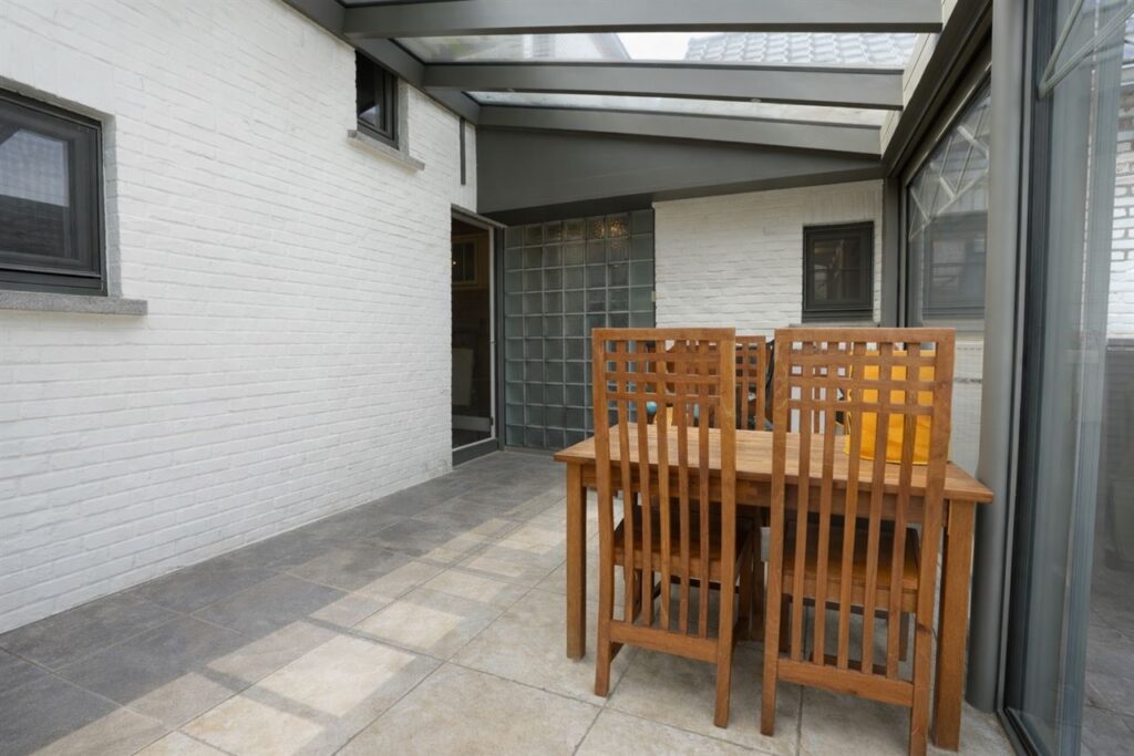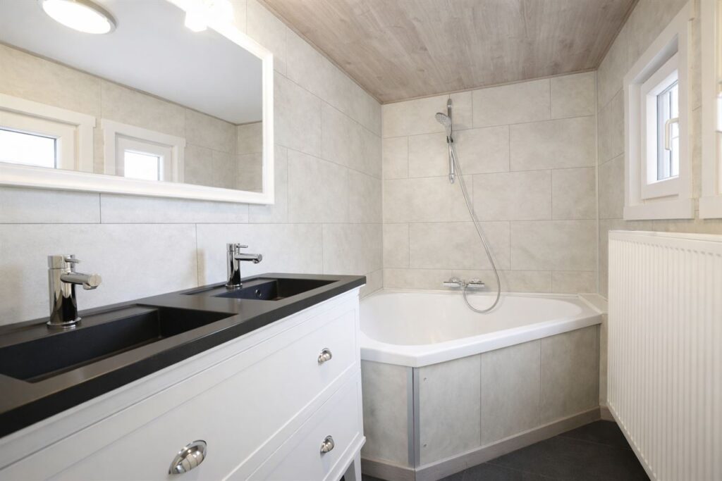 Verder bevindt zich op het gelijkvloers de badkamer, uitgerust met een hoekbad, evenals een ruime en lichtrijke veranda die een mooie overgang vormt naar de tuin, een ideale plek om het hele jaar door te genieten van licht en rust.