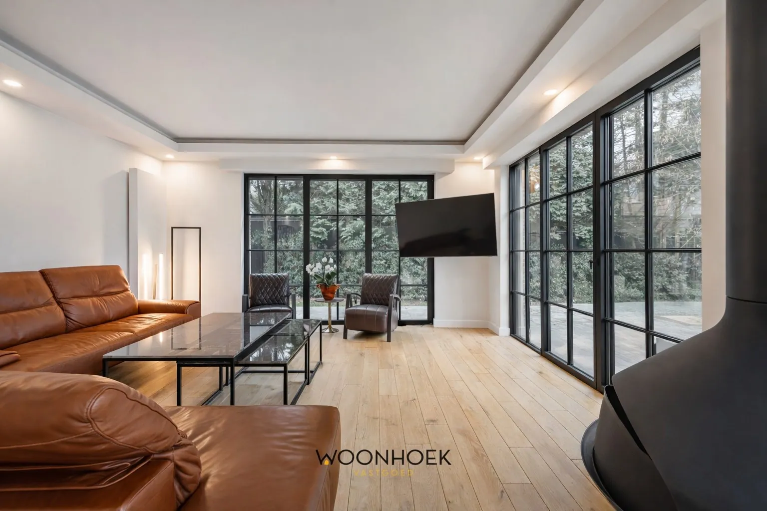 De leefruimtes zijn ontworpen met oog voor detail en natuurlijke lichtinval. De ruime woonkamer vormt het hart van de woning en gaat naadloos over in een praktische en stijlvolle keuken. Grote raampartijen zorgen voor een sterke connectie met de tuin en creëren een warme, open sfeer in elk seizoen.