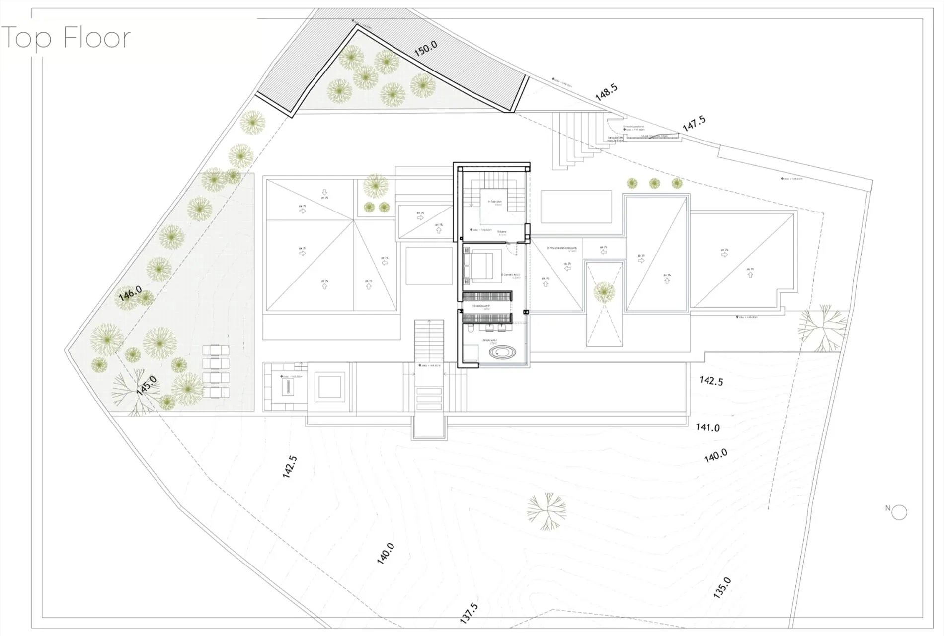 Deze eigentijdse off-plan villa zal bestaan uit inkomhal, gastentoilet, trappenhal met direct zicht op het zwembad en tuin.