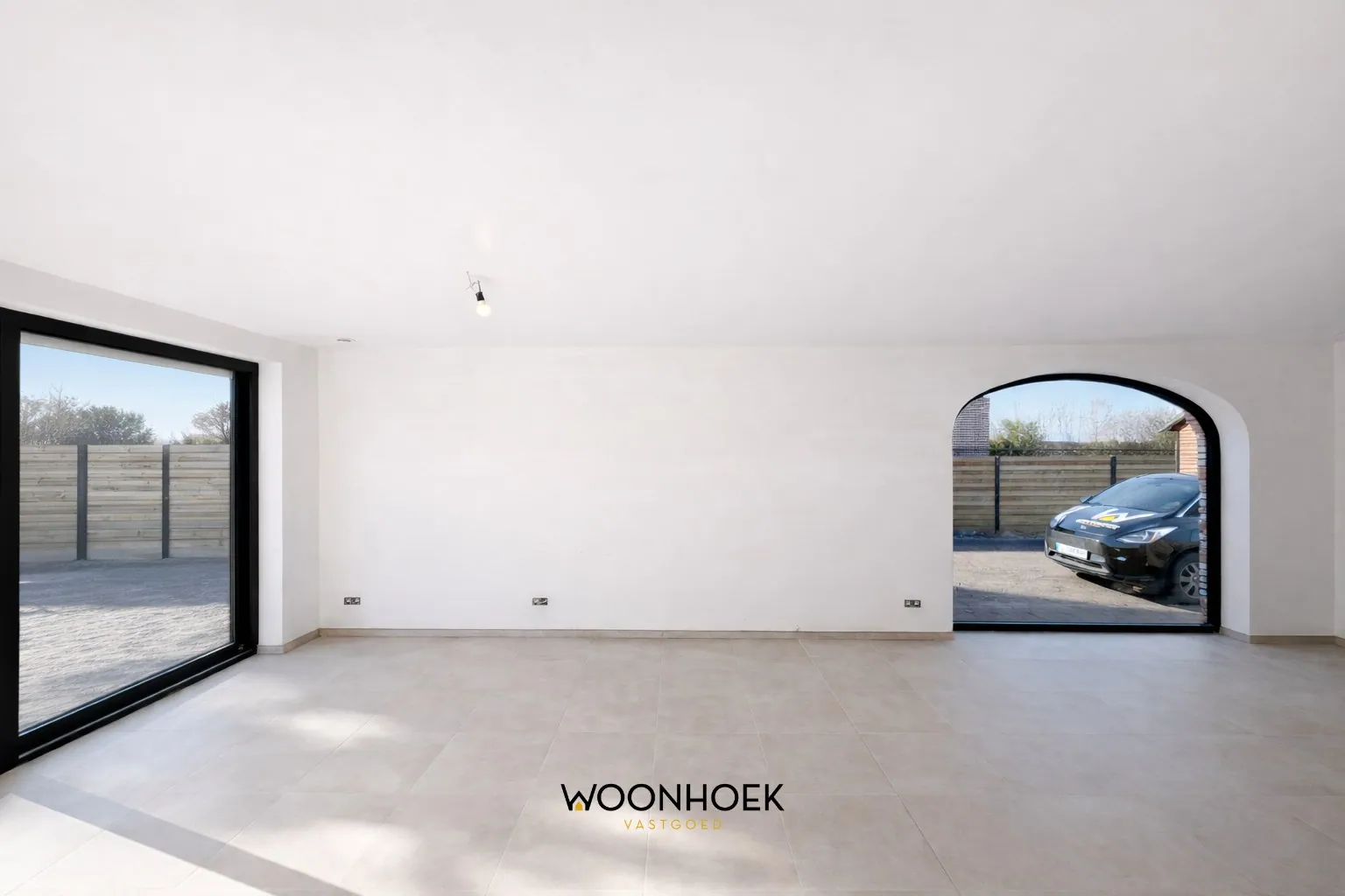 GLV: Via de stijlvolle inkomhal met gastentoilet betreedt u de woning. De lichtrijke leefruimte met vloerverwarming vormt het kloppend hart van het huis en is elegant opgedeeld in een eet- en zithoek. De indrukwekkende boogvormige raampartij zorgt voor een overvloed aan natuurlijk licht en creëert een verfijnde connectie met het zonneterras en de omheinde tuin, een uitnodigende buitenruimte waar rust en privacy centraal staan. De open keuken sluit naadloos aan op het geheel. Verder beschikt de woning over een ruime oprit met gemetste carport.